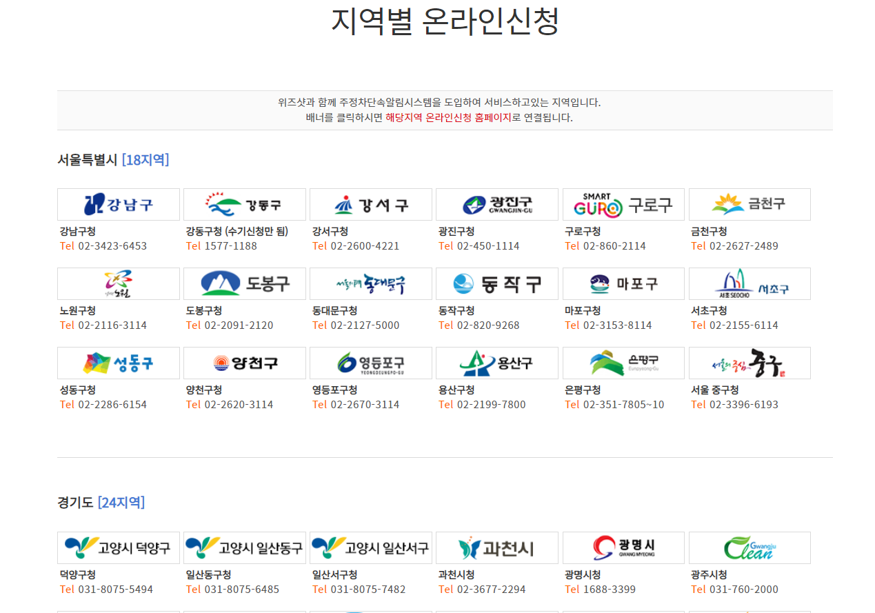 신청 및 등록방법은 지역별로 신청이 가능하며 내가 살고 있는 지역이 아닌 업무상 또는 개인적인 목적으로 자주 방문하시는 지역이 있다면 신청해 놓으시길 적극 추천합니다. pc로 신청하실 수 있고 모바일로도 신청가능하니 원하시는 곳에서 신청 등록하시면 됩니다.